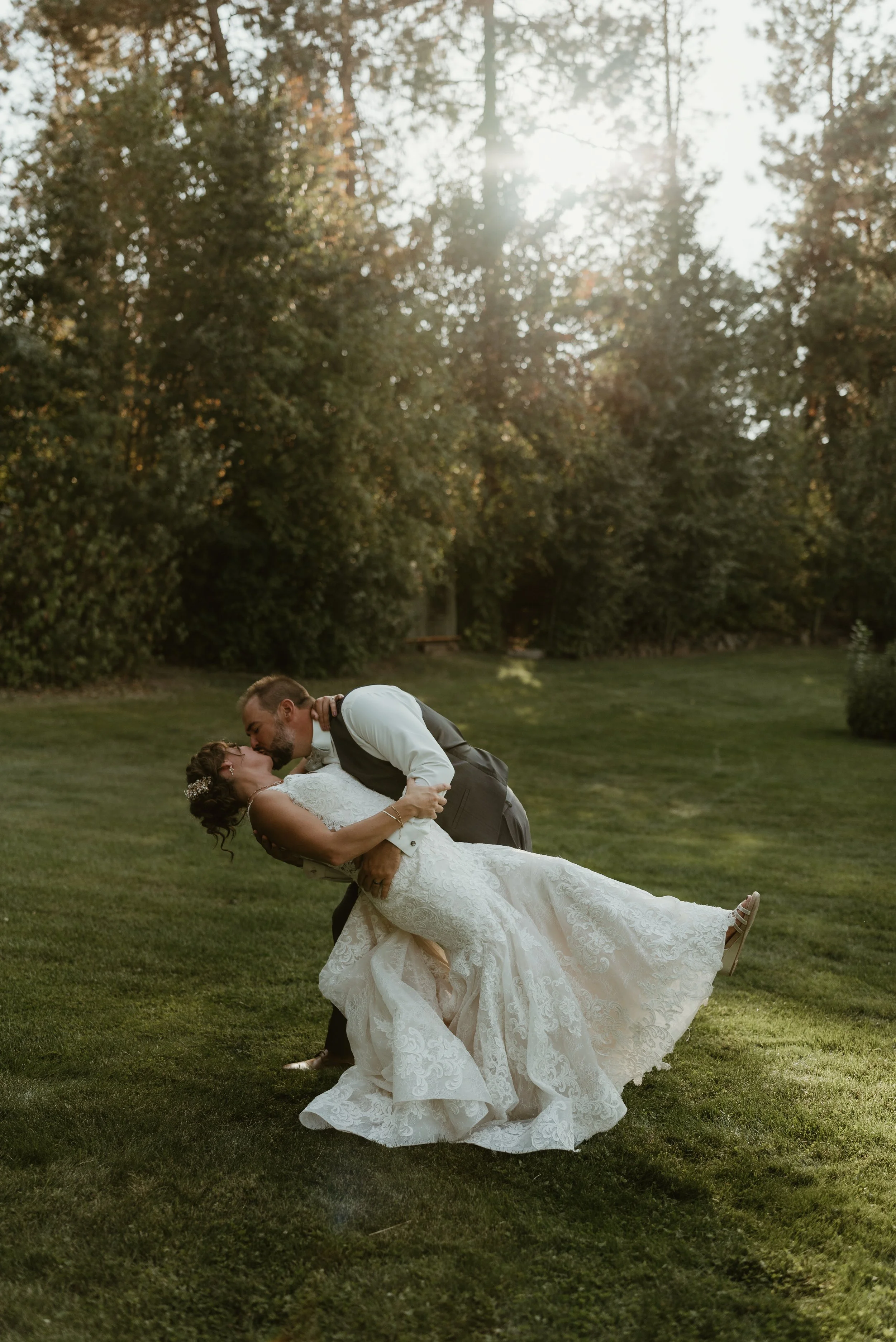 Our last wedding of the 2023 season was at a new venue in Wenatchee, WA. The gorgeous, forest-filled venue is called Mountain Pines Meadow. Owned by Stace and Angie Knudtson, this venue is tucked into a quiet and lush landscape. Truly PERFECT for a wedding of 100 people or less. Stace and Angie were fantastic to work with through the whole process. They had answers to all of our very specific questions (like, can we hang a heavy dress on this curtain rod??) and were just so friendly! We toured the venue with our bride, Carly, before the big day to ideate and imagine how to perfectly capture Carly & Jordan’s love story.